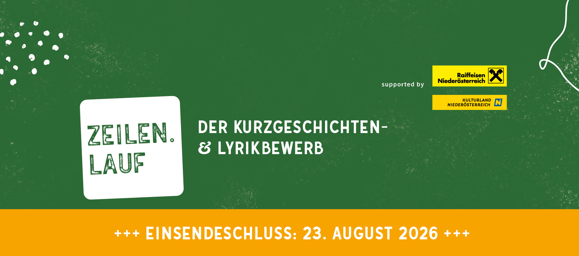 Beim Kurzgeschichtenbewerb zeilen.lauf können die AutorInnen eine selbstverfasste, noch nicht publizierte Geschichte einreichen und haben die Möglichkeit, attraktive Sach- und Geldpreise zu gewinnen. Die einzigen Vorgaben sind, dass das Werk in deutscher Sprache geschrieben ist und den Umfang von 4500 Zeichen (Leerzeichen, Tabstopps und Absätze werden nicht berücksichtigt) nicht überschreitet. Pro Person darf nur eine Geschichte eingereicht werden. Das Thema ist frei wählbar.
